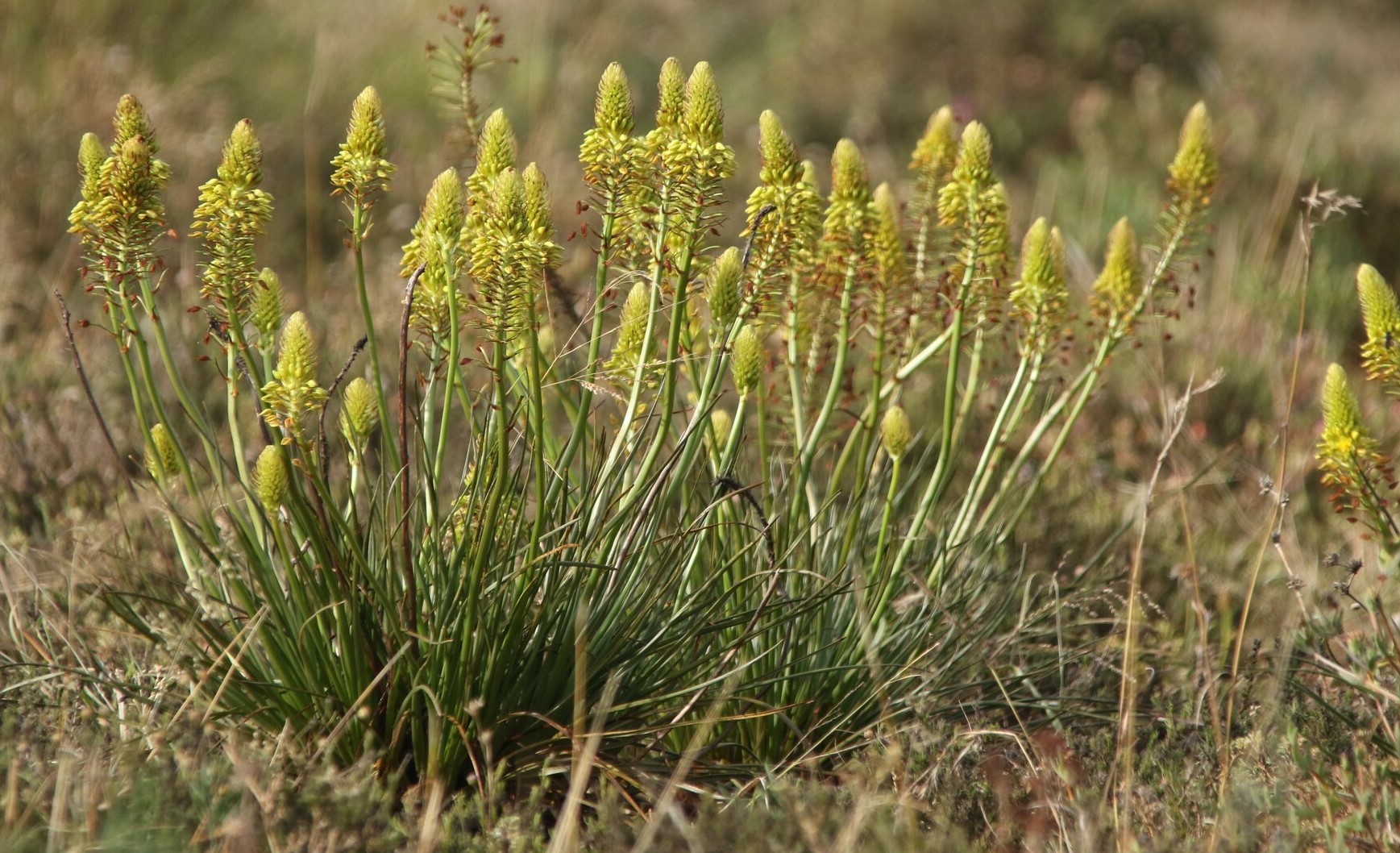 Bulbine abyssinica is a perennial, succulent herb that forms small clusters or tufts with soft, fleshy, grass-like leaves in a basal rosette.
