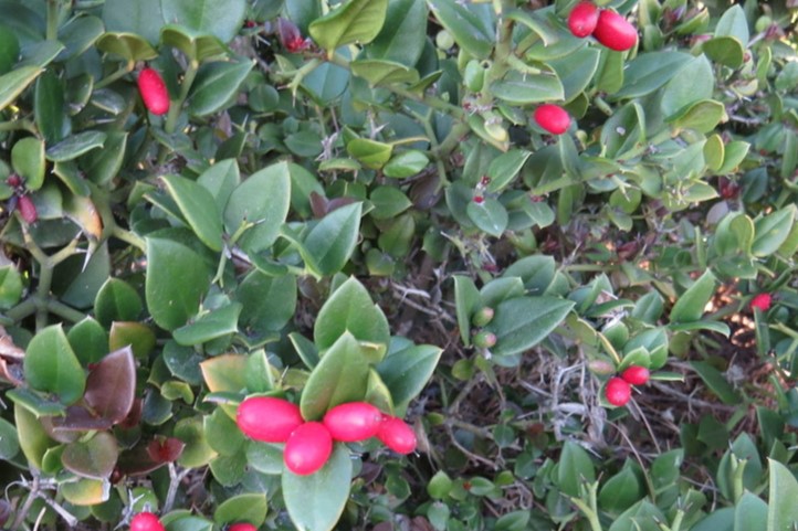 Small fragrant flowers attract pollinators; fruits are edible berries dispersed by birds and mammals.