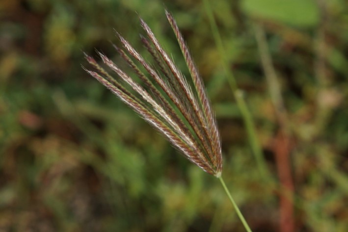 Inflorescence is a loose, open panicle with 4 – 20 finger-like branches, each with numerous tiny spikelets, giving a feathery appearance. Flowers and sets seed in summer.