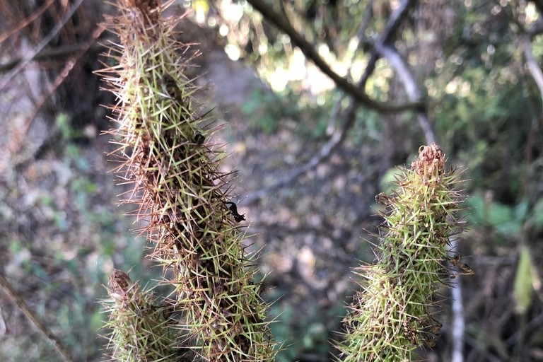After flowering, the calyx becomes sharp and reddish, giving a prickly appearance.