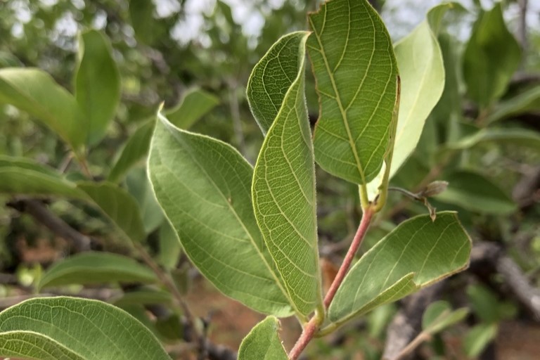 During the wet season, red bushwillow makes up 44% of the female diet and 34% of the male diet in Mopani woodlands. Eland, giraffe and elephants feed on the foliage whenever the trees are in leaf and can cause damage due to heavy feeding. Elephants also browse on the branches. Collectively, they all contribute to ecological pruning.