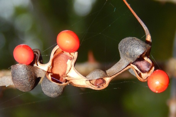 Flowers attract sunbirds and bees; pods eaten by birds and mammals; provides shade and shelter.